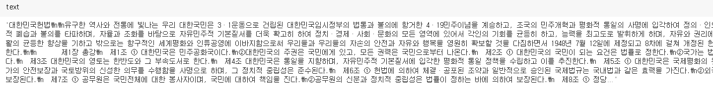 !pip install konlpyfrom konlpy.corpus import kolawtext = kolaw.open('constitution.txt').read()