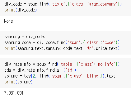 volume = tds[2].find('span', {'class':'blind'}).text # 거래량
