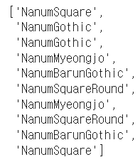 [matplotlib.font_manager.FontProperties(fname=font).get_name() for font in font_list if 'Nanum' in font]