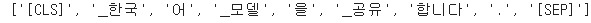 tokenizer.convert_tokens_to_ids(['[CLS]', '▁한국', '어', '▁모델', '을', '▁공유', '합니다', '.', '[SEP]'])