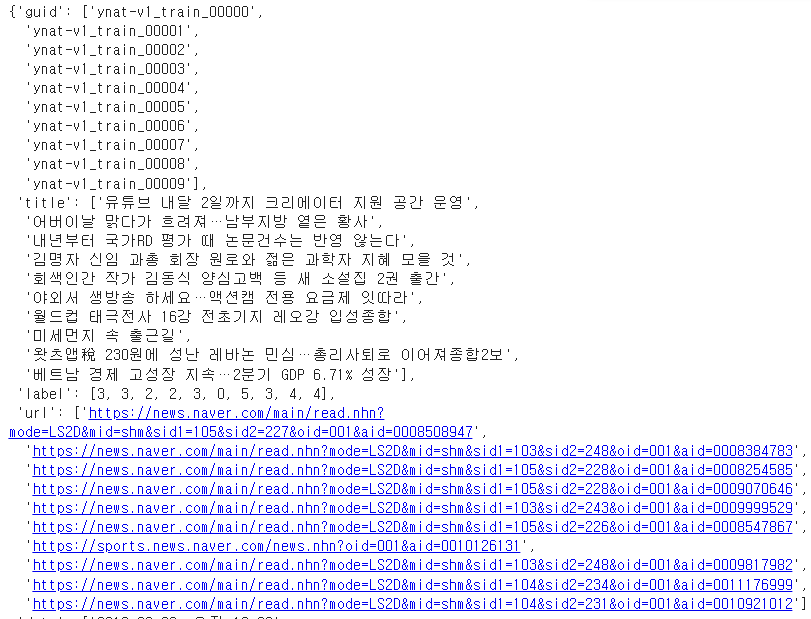 - 뉴스스크롤: 2011년부터 2020년까지 발행한 12,000,000개의 뉴스기사로 구성되어 있으며, 뉴스 집계 플랫폼에서 수집