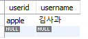 - select userid, username from member where userid like '%app%'; -- app이 들어가는 문자열