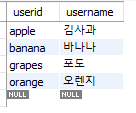 - select null; # 데이터가 없음, insert가 되지 않은 것