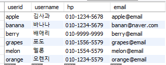 - select userid, username, hp, email from member where userid = 'apple' and userpw = '1234';