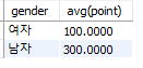 - select gender, avg(point) as 평균 from member group by gender;