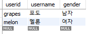 - select userid, username, gender from member limit 3,2;