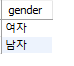 - select gender from member group by gender;