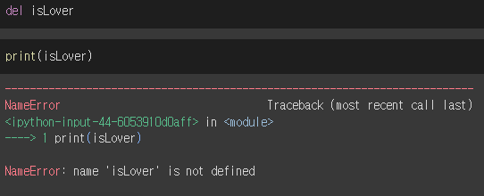 - del: 객체를 삭제하는데 사용. (파이썬은 데이터를 저장할 수 있는 모든 것은 객체)