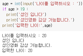 if 조건식(결과가 True 또는 False가 나오는 문장): 조건식이 True인 경우 실행할 문장